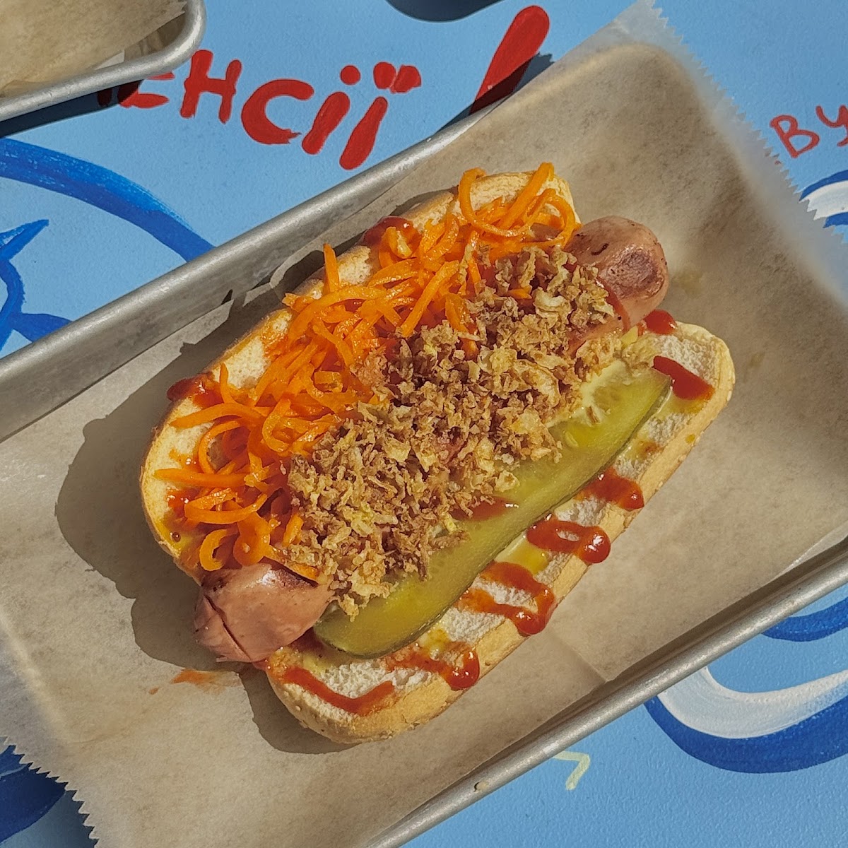 The café's specialty lies in its creative offerings, especially when it comes to hot dogs. The Vega da VinciDog features a crisp grilled bun topped with sautéed mushrooms, a refreshing pesto sauce, fresh herbs, sesame and pumpkin seeds, parmesan cheese, and a slice of lime—perfect for those seeking a delightful fusion of flavors. For those who crave something heartier, the RiveraDog boasts a juicy sausage complemented by guacamole, crunchy nachos, jalapeños, and a smooth herb-infused creamy sauce. You can also indulge in the classic Tarás ShevchenkoDog, bringing a nostalgic taste that's hard to resist.
